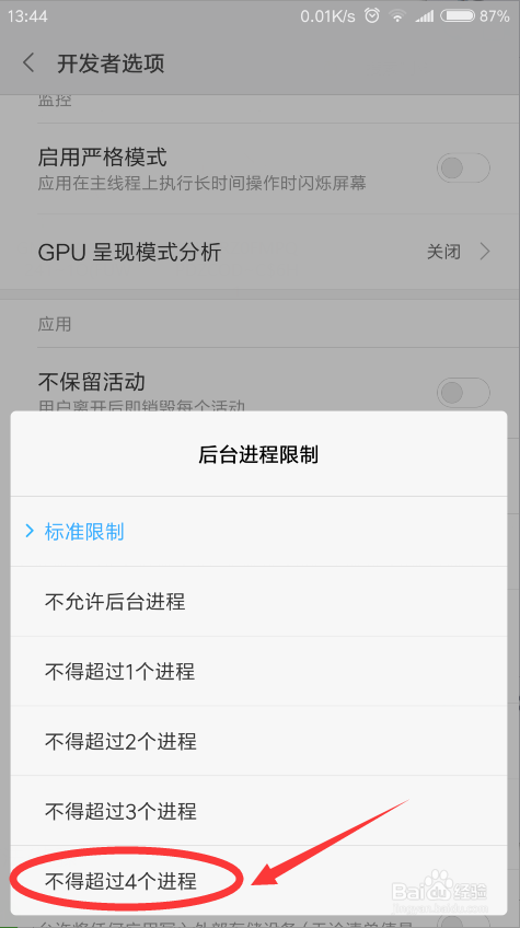 设置好之后,我们继续标的目的下滑动,找到“后台历程限制 ”按钮,点击打开它 。