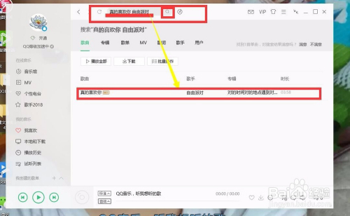 然后在搜刮栏输入我们想找的歌曲,看到搜刮成果是不是我们想找的。
