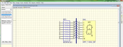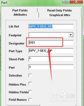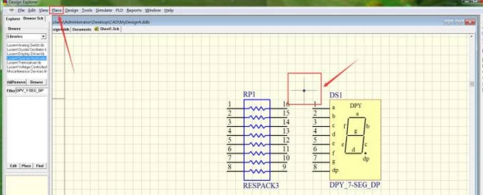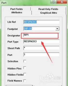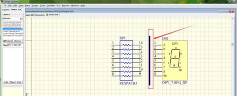 在道理图中放置一个排阻和一个LED,如图,左边是排阻,右边是LED。鼠标左键双击元件,在属性对话框中点窜它们的元件名称和元件序号。