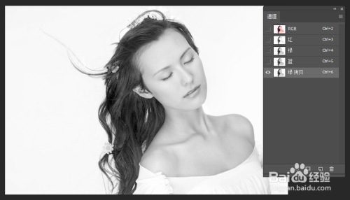 3.点击“通道面板”,选择与布景差别年夜的颜色通道,这里选择绿色通道。然后,复制绿色通道,获得绿色通道副本。