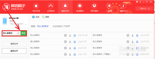(三)在i4助手中,打开【酷炫铃声】,在左边搜刮本身喜爱的铃声,如“我从草本来”,成果如下图。