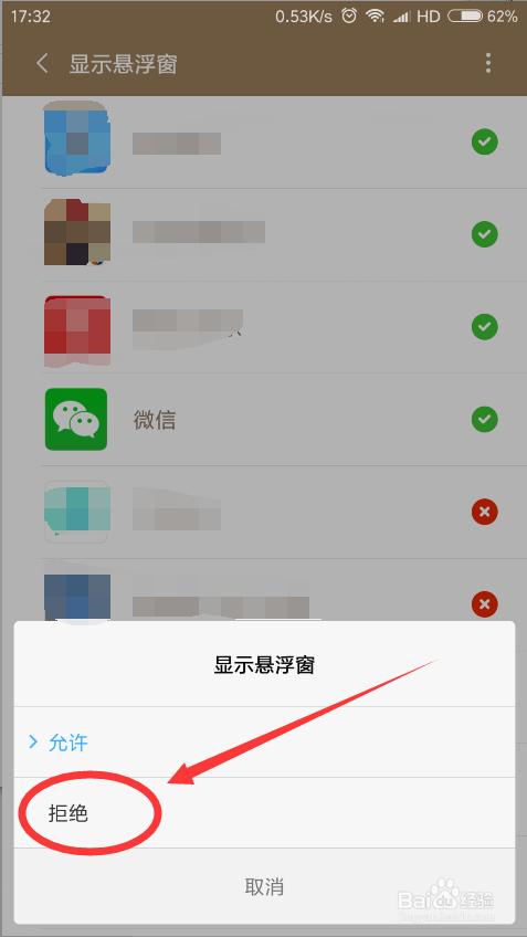然后点击“拒绝 ”按钮,把许可,换当作“拒绝 ” 。