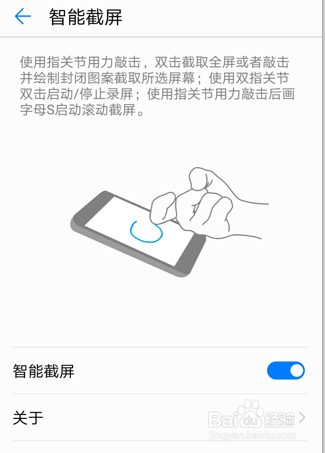 设置后用本身的手指关节,快速双击两次屏幕。就可以截图当作功了。操作如图