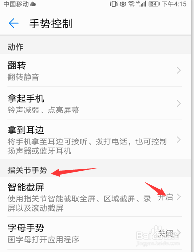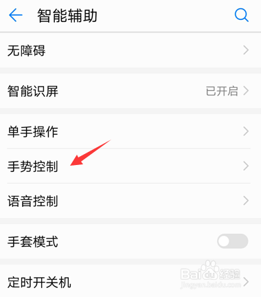 找到“手势节制“,开启智能截屏。操作如图