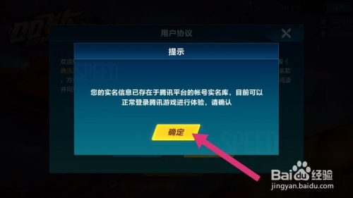若是选择的QQ是初次登录,没有进行过实名认证,那就会跳出实名认证的界面;若是已进行实名认证,点击确定键就可以了,如图。