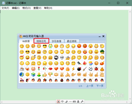 在弹出的符号输入器面板中,点击切换到“特别符号”。
