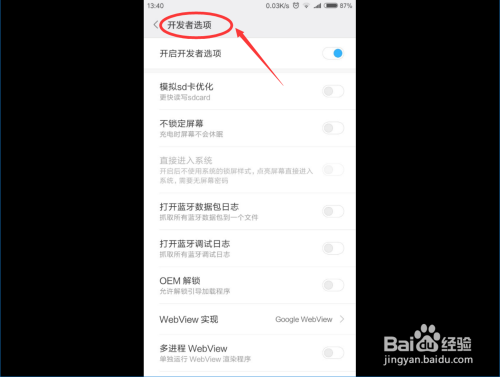 打开“开辟者选项 ”按钮之后,我们就会来到开辟者模式下的设置页面,在这个页面下我们可以设置很多特别的设置 。