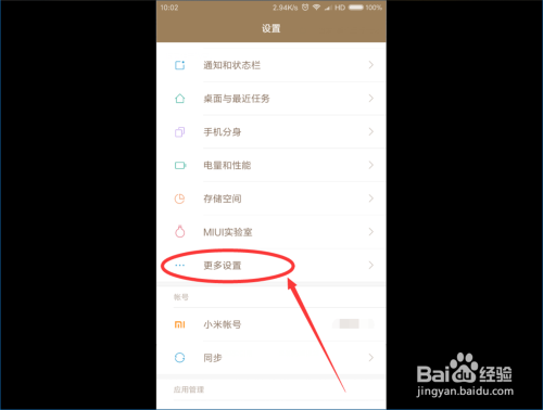 然后,我们打开“设置 ”页面,标的目的下滑动,找到“更多设置 ”按钮,点击打开 。