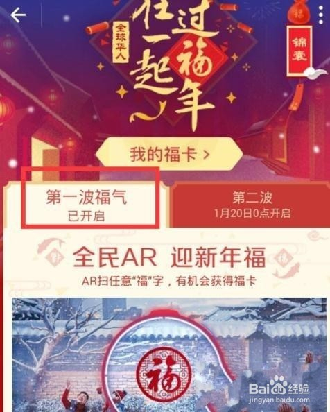 首先,在手机上点击进入付出宝‘在一路 过福年’活动。