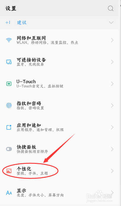 然后在点开的设置傍边找到"个性化" 并点开。