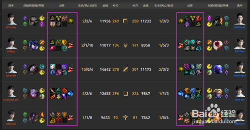 (1)看职业角逐选手如何出装备借鉴(职业选手出装在版本比力权势巨子,在官网上有赛后数据阐发和角逐录像)。