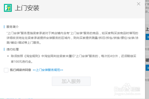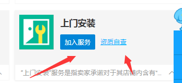 点击插手办事后,系统主动跳转到淘宝商家可插手办事的页面,如下图找到上门安装办事,点击插手或者自检天资。
