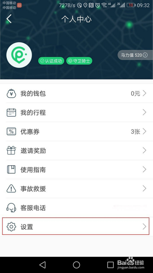 选择最下方设置进入设置页面