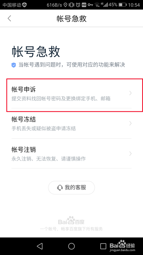 然后是“账号申诉”。