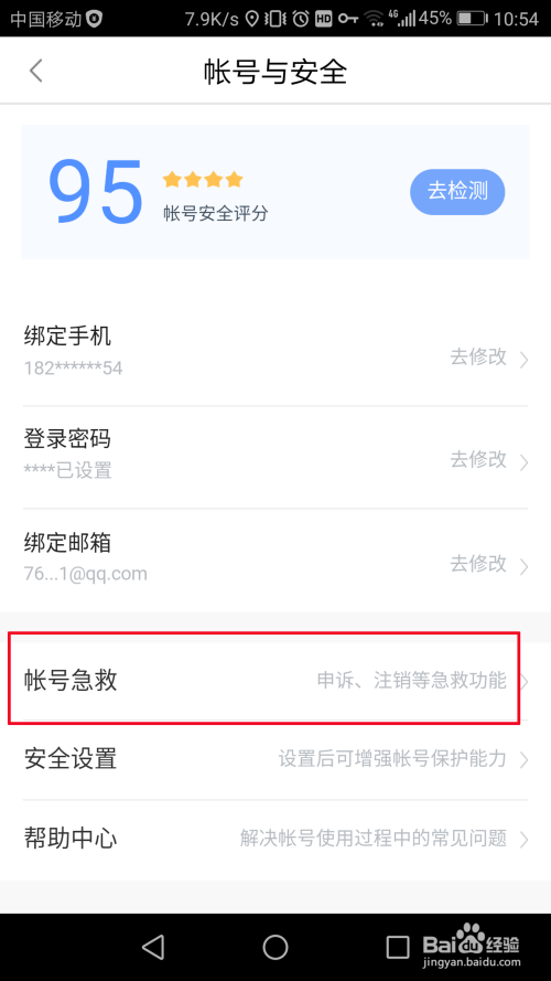 申诉必定就属于急救的规模了,点击“账号急救”。