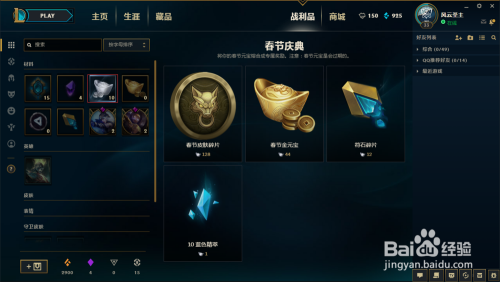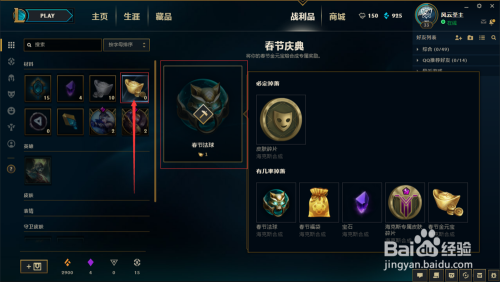 英雄联盟2018新年活动中,新增了一个道具春节元宝,春节元宝可以在战利品中兑换或抽取丰硕的游戏奖励。下面给大师具体展示一下春节元宝的获取。