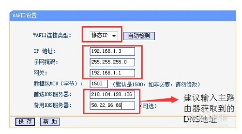 选择静态IP须输入IP(从本家儿路由器上获取的IP,本身设置,但IP不成是本家儿路由器DHCP分派规模内及网内其他设备占用的IP。)