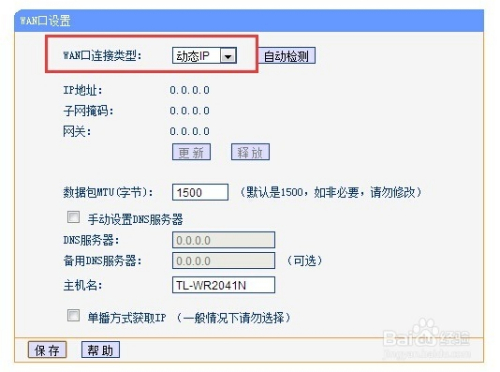 WAN口毗连设置可选择静态IP或动态IP。