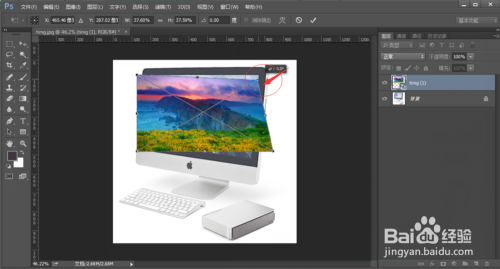 操纵PS将一张风光图片镶嵌到电脑或手机屏幕中,这里本家儿要运用到自由变换中的“扭曲”号令,很简单的一个作图,两分钟就可以学会。