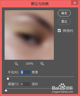 6.封闭不雅察组,按Ctrl+Alt+Shfit+E键盖章图层。点击“滤镜”— “杂色” — “蒙尘与划痕”,调整恍惚水平(图一)。然后添加图层蒙版,用黑色画笔(不透明度和流量都为100%)涂抹五官、头发和布景。如许皮肤就显得加倍细腻润滑了。