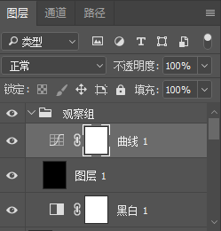 4.点击“图像”— “调整” — “口角”(图一)。新建图层,填充为黑色,模式为“柔光”(图二)。然后点击“图像”— “调整” — “曲线”,让亮部凸起(图三)。接着建立新组,定名为“不雅察组”(图四)。