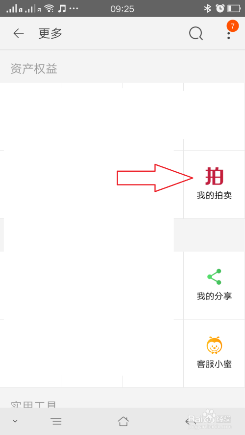 点击更多进入到更多页面,这里能看到我 的拍卖,如图