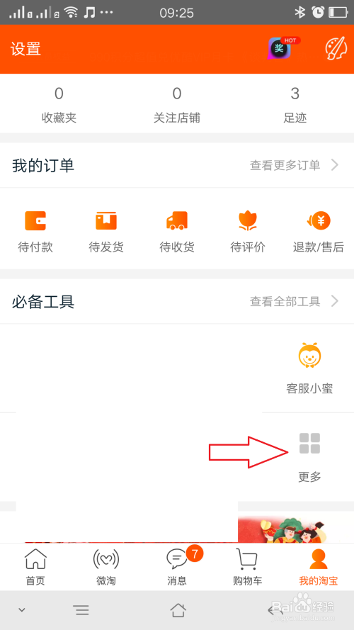 手机打开淘宝,进入我的淘宝页面,如图