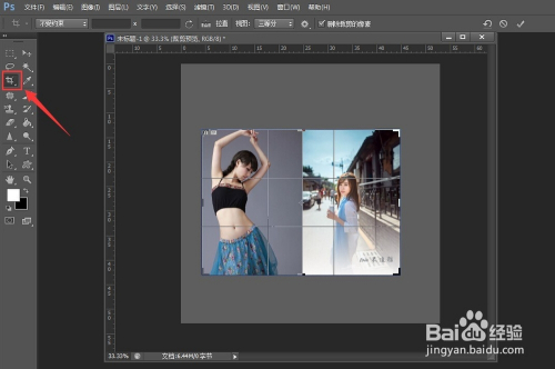 选择裁剪东西,对画布进行裁剪。与方式一分歧的是,这一次的裁剪要往外裁剪,把右边埋没起来的图片也裁进去。
