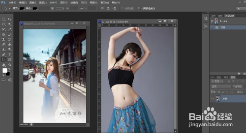 同样的打开PS,导入想要处置的两张图片。