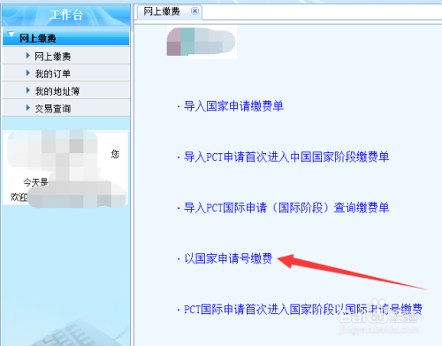 最后当作功登录,此时会在新窗口打开登录界面,点击右上角的“网上缴费”即可打开缴费界面,鄙人图2中可以选择缴费体例,这里选择经由过程申请号查看应缴纳费用。
