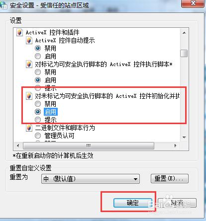 接着需要设置平安级别,同样点击“受信站点”后,点击自界说级别按钮,打开新窗口后,如下图2所示进行设置,启用方框中的办事,最撤退退却出并保留设置,呈现弹窗提醒,确认即可。