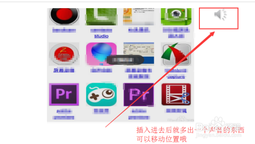 插入后音频喇叭就会呈现在ppt工作区了,我们可以随心所欲的摆放它的位置哦