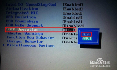 另一个类型也是在Advanced这一项,找到其下的SATA Operation这一项,将其值由AHCI改为IDE就可以了,按F10保留退出。