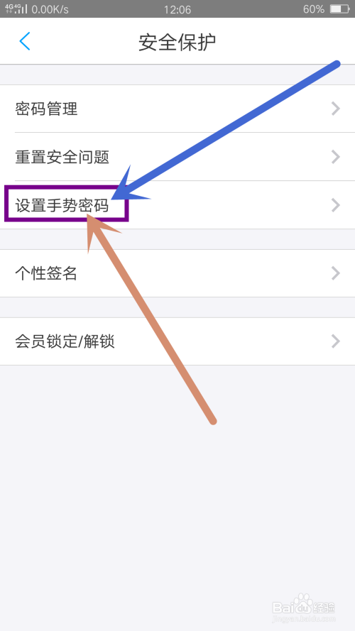 在平安庇护功能中,点击打开“设置手势密码”,如图所示