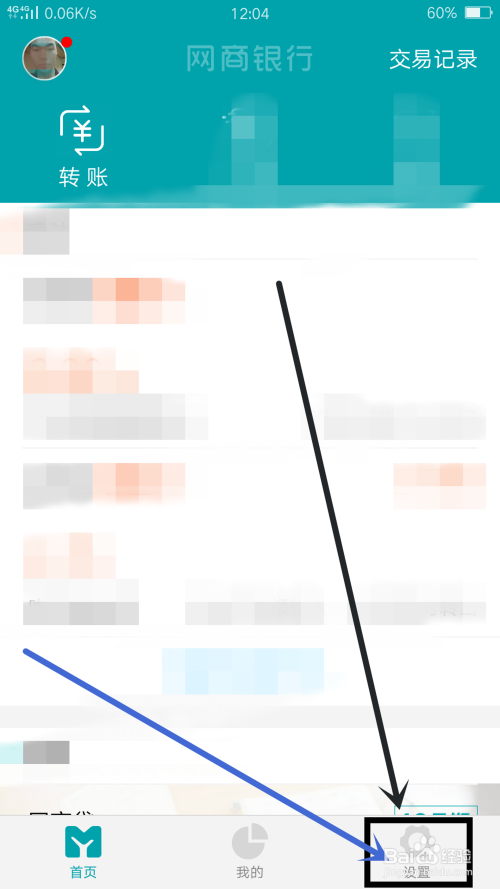进入网商银行首页后,再点击下面菜单进入“设置”,如图所示