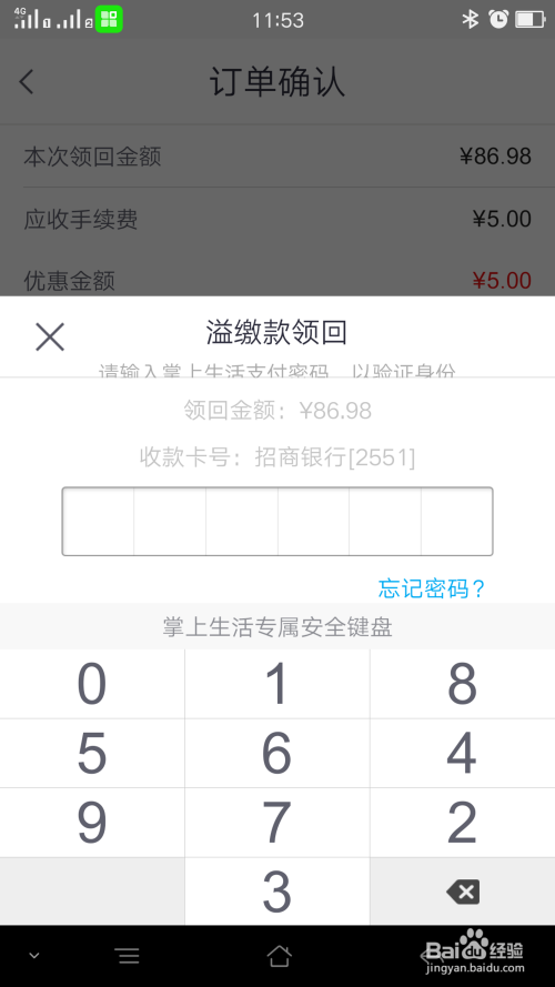 点击溢缴条目,进入到溢缴条目领回界面,如图