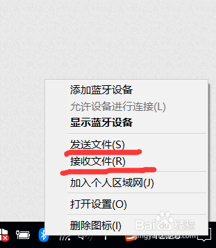 我们点击桌面右下角蓝牙功能键,有接收文件和发送文件的选项,蓝夜配对今后传输文件不费流量,速度快,蓝牙传输也是文件传输的一种主要形式。
