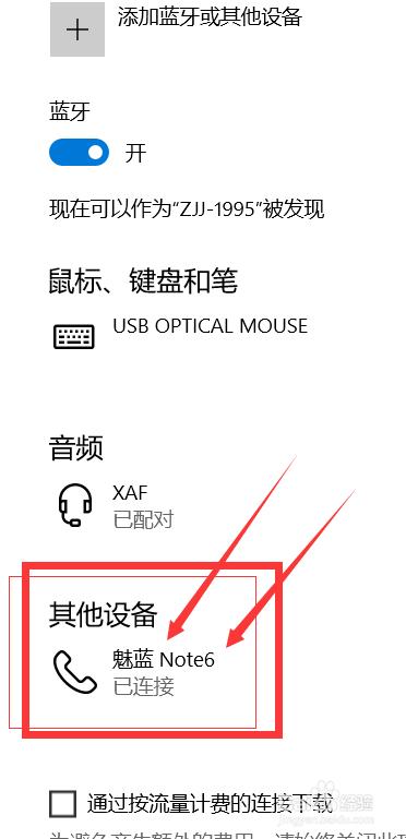 再次打开蓝牙界面,我们发现手机和电脑已经配对当作功,配对当作功今后可以实现文件传输,资本共享等。