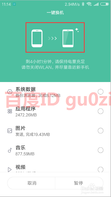 如许就可以起头进入数据的筹办了,旧手机也要有充沛的空间,否则无法进行转换的,
