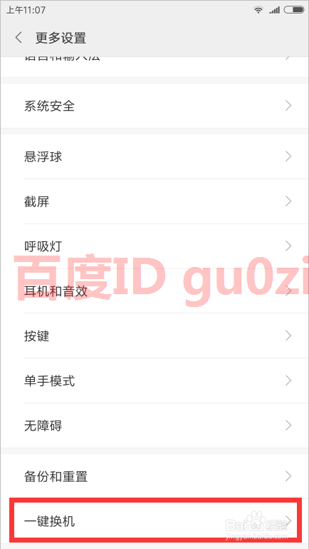 从设置列表中,打开 更多设置,这里可以看到 一键换机,