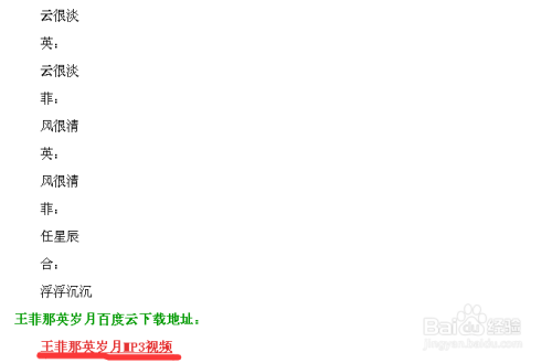 第三:进入之后,我们看着这个页面一个“王菲那英岁月”的视频播放网盘的一个封面,我们一向拉到最底下。可以可以看见“王菲那英岁月百度云下载地址:”点击进入。