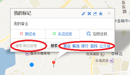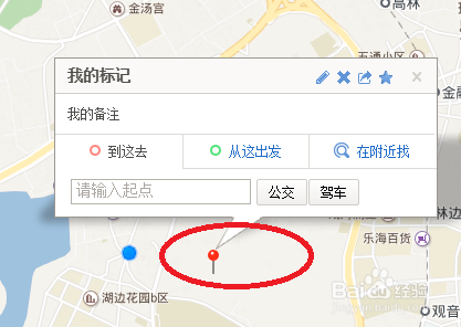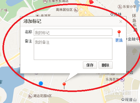 点击上图中红框中的标识,在地图上打上标识表记标帜,设置名称和备注,如图