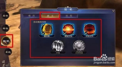在【设置】-【挂机】-【战斗】设置中,可对挂机时主动释放的技术进行设置