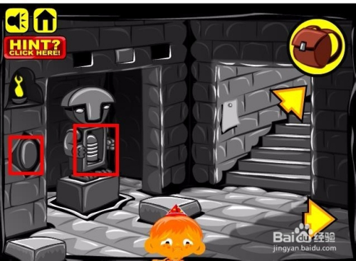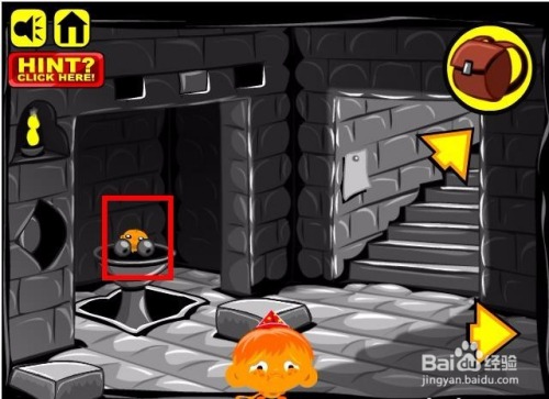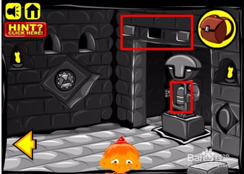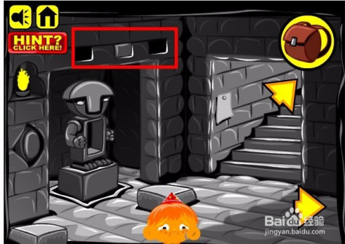 接下来点击雕像左侧的开关,然后雕像就会下降,然后就会呈现一个小山公和两个小铁球,点击收进背包。