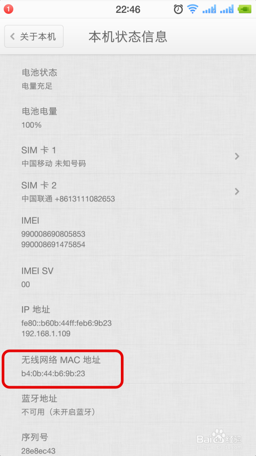 在这里我们要注重一下,若是我们手机在没用连网的环境下,是看不到MAC地址的。