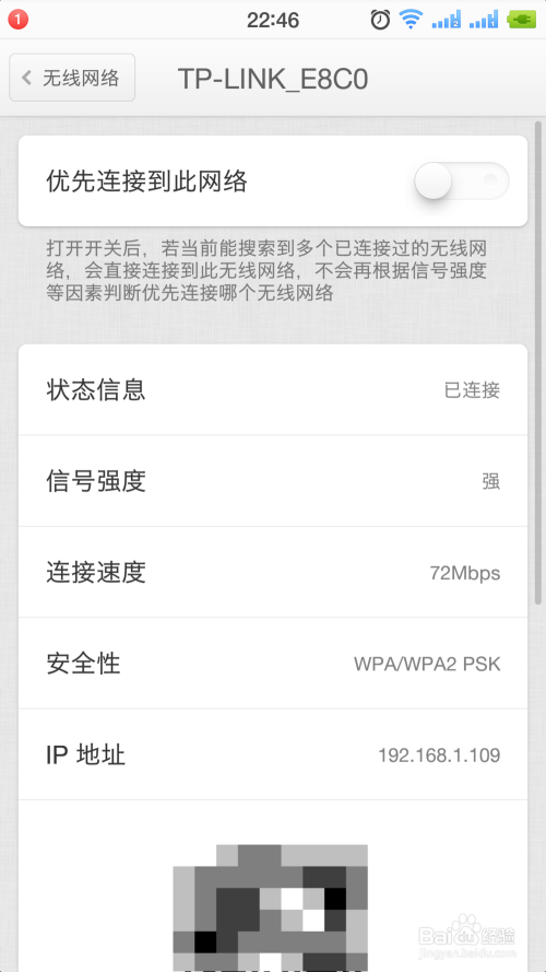 若是不是坚果手机,我们也可以经由过程毗连的无线收集,点击进入详情就可以看到MAC地址。