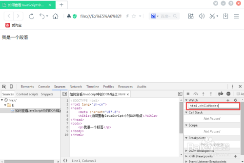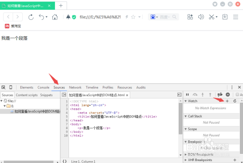接下来,点击Sources和最右边的加号,并在文本框里写上获取DOM子节点的代码,如下图: