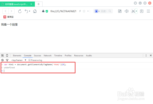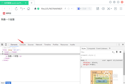 紧接着,我们用百度浏览器打开html文件,并按键盘上的F12,同时点击Console节制台,如下图