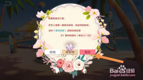 点周拆开后就可以看到求交往的信了,下端就是选项,可以拒绝也可以接管,如图。