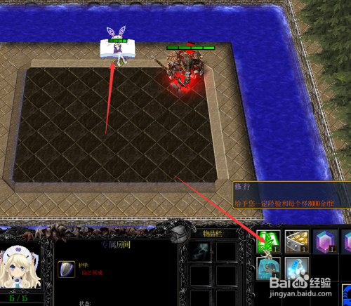 进入专属房间后直接点击这里的NPC,然后点击修行图标,如下图所示。